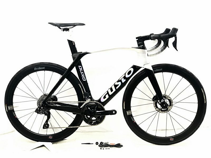 【プライスダウン開始】美品 グスト GUSTO DURO EVO DB SPORT SPEED 105 R7100 電動Di2 油圧DISC 2023年 カーボンロードバイク MLサイズ ブラック/シルバー【お買い得SALE】