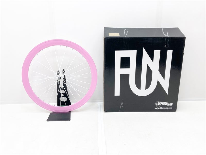 ファン FUN ライダーズカフェ ピスト ピンク フロントホイール 700c ホワイトスポーク ディープリム 50mm 32Hです。